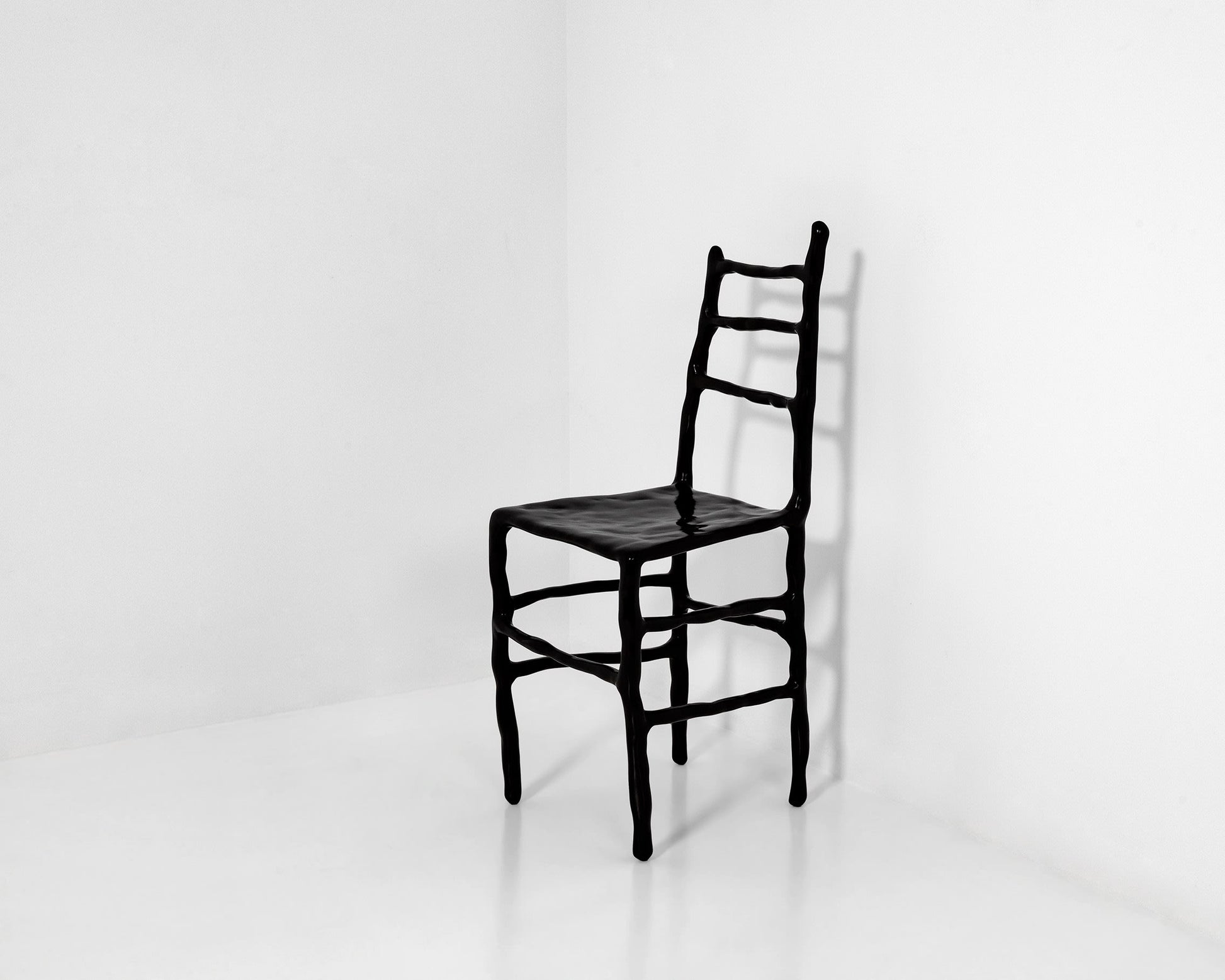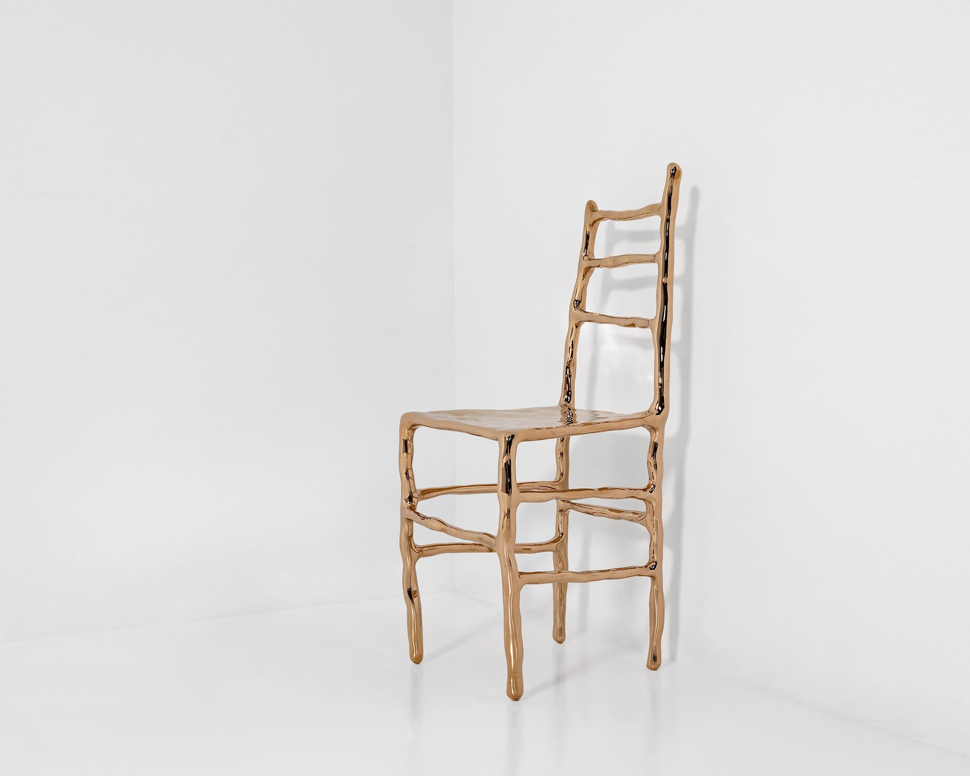 Baas creates a dislocated image, presenting an informal and playful chair as high art, seen through the visual language of bronze sculpture.