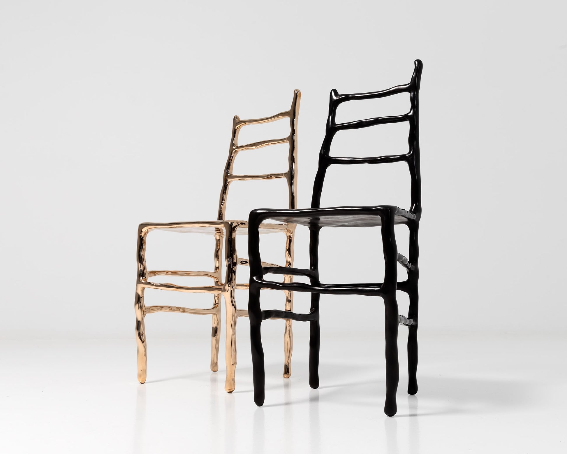Maarten Baas includes two new chairs from his Bronze series, one with a patinated finish and one highly polished.