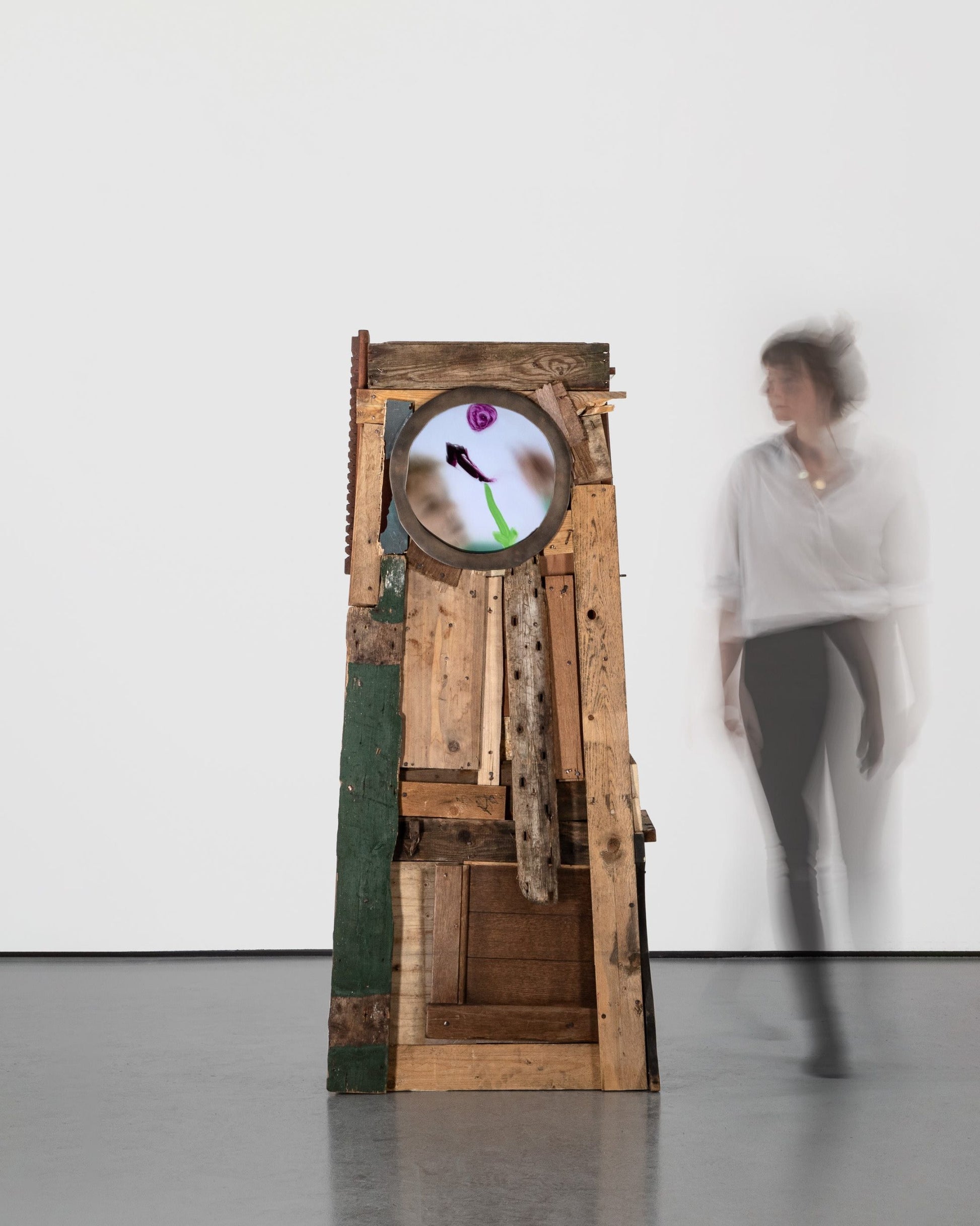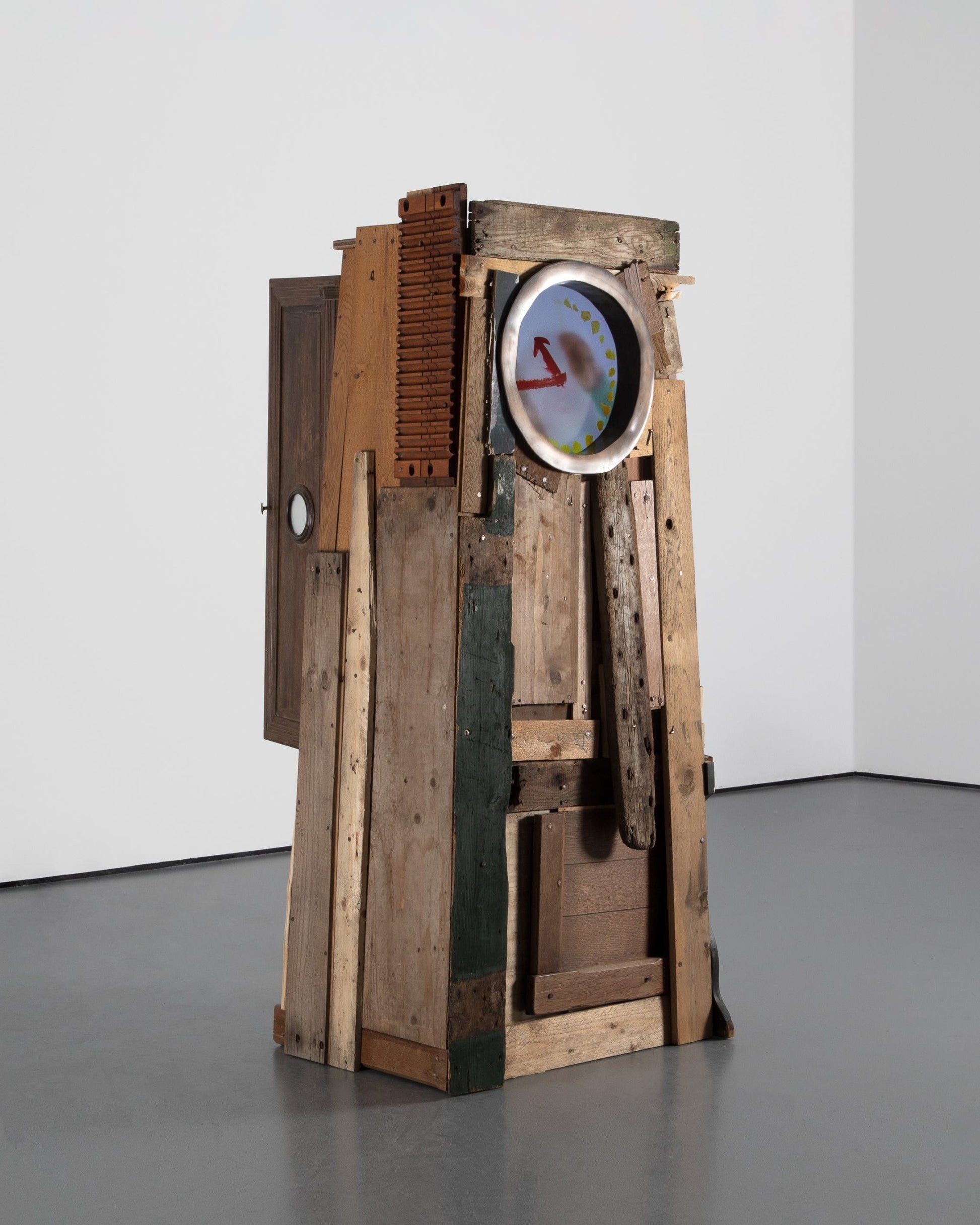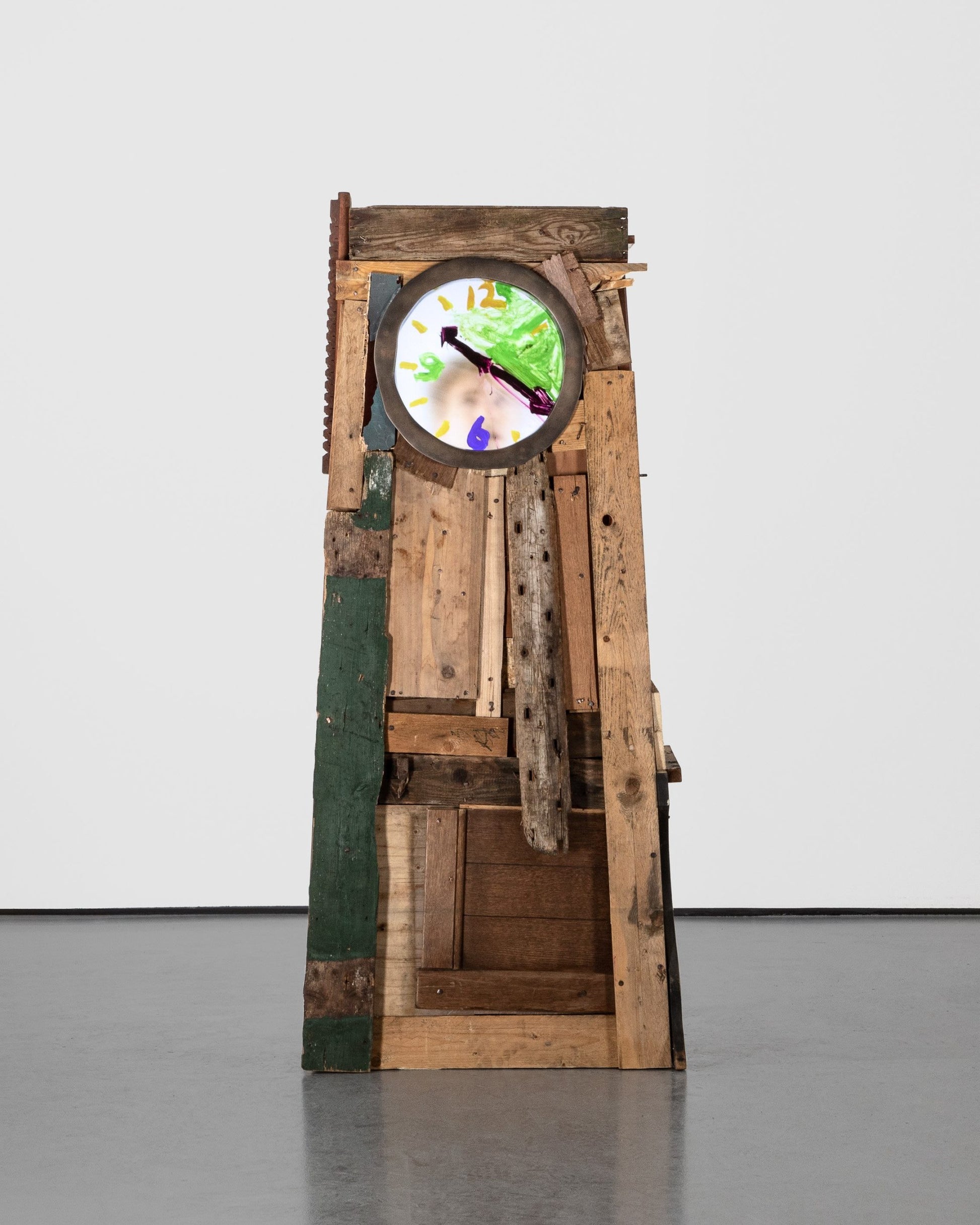 Grandfather Clock – The Son continues Maarten Baas’ performative regression towards childhood. His Grandfather Clocks, part of his Real Time series, were first made with traditional brass bodywork, and the artist performing as the titular grandfather behind the digital clock face. In Grandfather Clock – The Son, the artist is instead performing as a child, with the clock itself made from planks of wood in the manner of a tree house. As part of the Play Time exhibition, Baas assumes a Peter Pan-like character, representing his life-long balancing act between growing up and remaining a child.