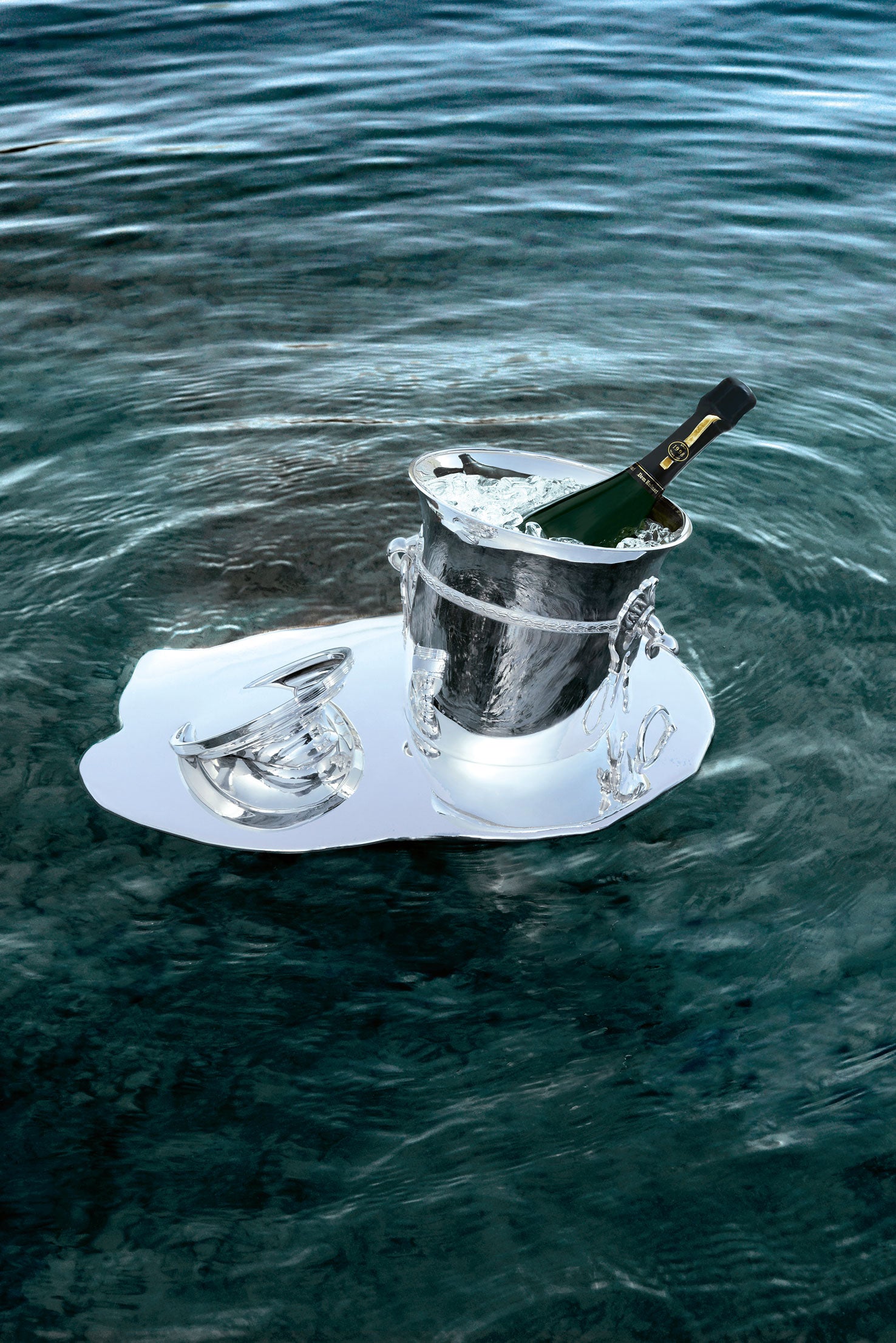 Baas created the Melted collection, an exclusive collection of champagne tableware. Dom Ruinart is both traditional and avant-garde. Baas represented this duality by picking the archetypical image of a chandelier and bucket that was once glorious and theatrical, and metamorphosed them into melted new forms.